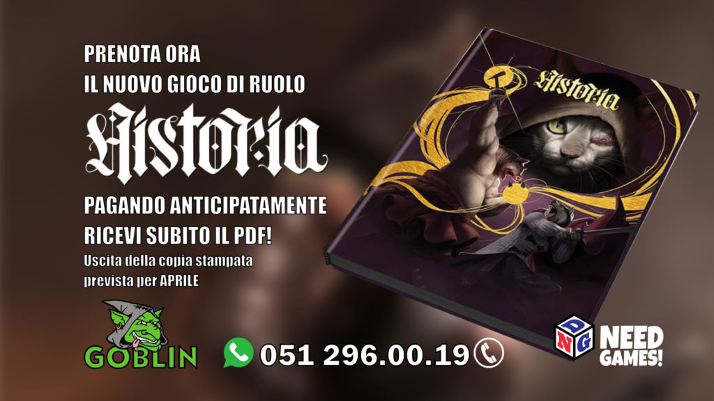 HISTORIA è un’ambientazione rinascimentale Dark Fantasy per la quinta edizione del più grande gioco di ruolo del mondo che introduce l’ambientazione di Vesteria, una terra spietata, piena di intrighi e popolata da animali antropomorfi.